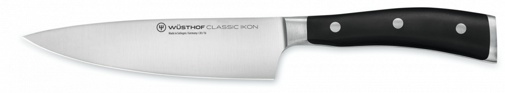 Wüsthof Classic Ikon Szakácskés egyenes élű 16 cm-es pengével, fekete markolattal.