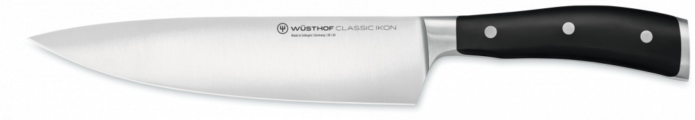 Wüsthof Classic Ikon Szakácskés egyenes élű 20 cm-es pengével, fekete markolattal, díszdobozban.