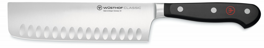Wüsthof Classic Nakiri japán szakácskés barázdált 17 cm-es pengével és fekete markolattal, díszdobozban.