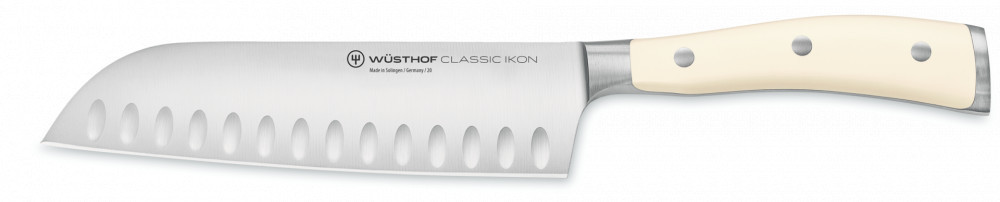 Wüsthof Classic Ikon Creme Santoku japán szakácskés barázdált 17 cm-es pengével és krémszínű markolattal.