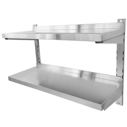 Rozsdamentes acél falipolc, kétszintes, sima lappal, állítható konzollal, lapraszerelt, 120x40cm – WT-C300914