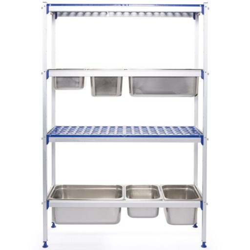 - GN edényzet befogadására alkalmas: A síntávolság lehetővé teszi, hogy minden szinten el lehessen helyezni két GN1/1 méretű edényt. Ezáltal könnyen rendszerezheti az összetevőket vagy ételeket.