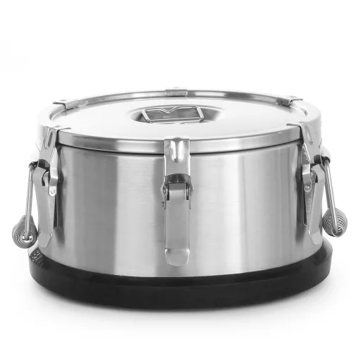 A badella duplafalú rozsdamentes acél kivitelű, amely nemcsak tartósságot biztosít, hanem hozzájárul a hatékony hőszigeteléshez is. Az oldalsó szállítófogantyúk kényelmes és biztonságos kezelést tesznek lehetővé, még nagyobb tömeg esetén is. A gumírozott alsó rész védi a badellát és a padlót az esetleges sérülésektől, ami különösen fontos a rendszeres használat során.