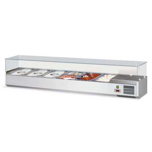 Ez a feltét hűtő vitrin 10xGN 1/4-150 edény részére tervezett, azonban fontos tudni, hogy az edényzetet az ár nem tartalmazza! Ennek figyelembevételével érdemes megtervezni és beszerezni az ehhez megfelelő edényeket.