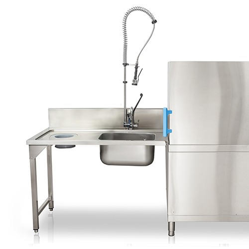 A legtöbb ipari felnyíló mosogatógéphez illeszkedő kialakítással, csavarral könnyen csatlakoztatható.