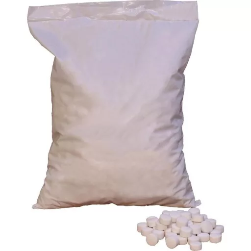 Ez a 25kg-os zsák nagytisztaságú sótablettákat tartalmaz, melyek ideálisak vízlágyító készülékekhez.