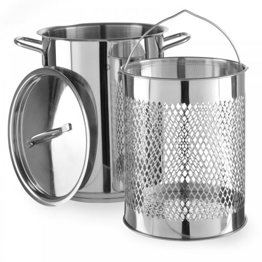 - 3 részes rozsdamentes acél edény garnitúra: A fazék, a pároló-szűrő kosár és a fedő mind rozsdamentes acélból készültek, így hosszú élettartamot és könnyű tisztíthatóságot biztosítanak.