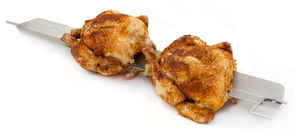 Használatával a csirke vízszintesen kerül a sütőbe, ami a legjobb önzsírozási eredményt biztosítja, és megakadályozva a hús kiszáradását.